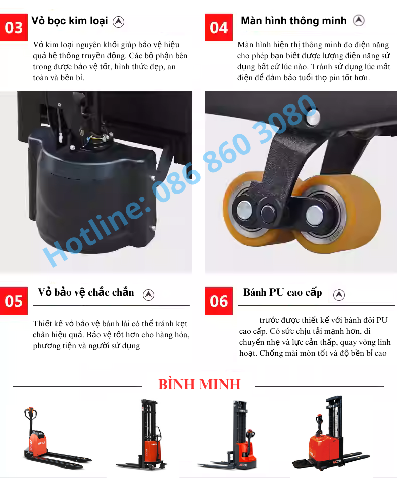 Công ty TNHH Xe nâng Bình Minh tự hào là đơn vị độc quyền phân phối các sản phẩm xe nâng Heli tại Việt Nam. Bình Minh cung cấp và bảo hành xe nâng Heli tận nơi cho khách hàng, giá bán tốt nhất cho doanh nghiệp của bạn.