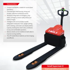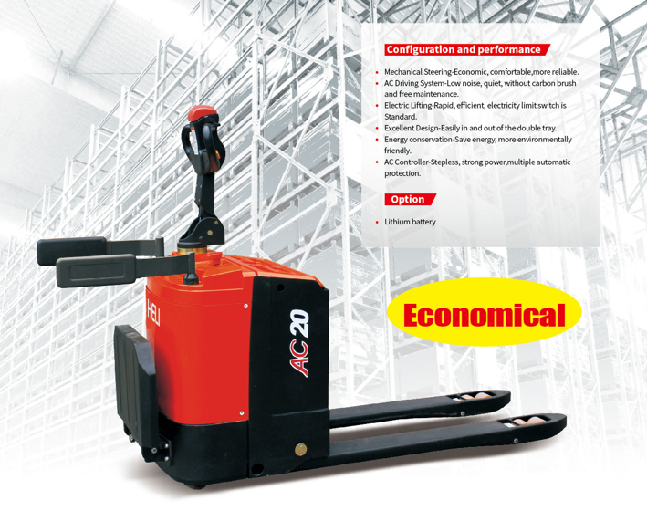 CBD20J-Li-SCBD20-ALIH là 2 mẫu xe nâng tay điện được Heli sản xuất có giá thành rẻ nhưng lại có hiệu suất cao. Xe được Heli tối ưu hóa về thiết kế và hiệu suất, tránh được nhiều các lỗi hư hỏng mà xe nâng tay điện khác thường gặp phải. CBD20J-Li-S và CBD20-ALIH là 2 mẫu xe bán chạy nhất tại thị trường Việt Nam cũng như thị trường quốc tế. Xe có tải trọng nâng tối đa 2 tấn, làm việc được liên tục lên tới 5 giờ và chỉ mất chưa đầy 2 tiếng để sạc đầy pin.